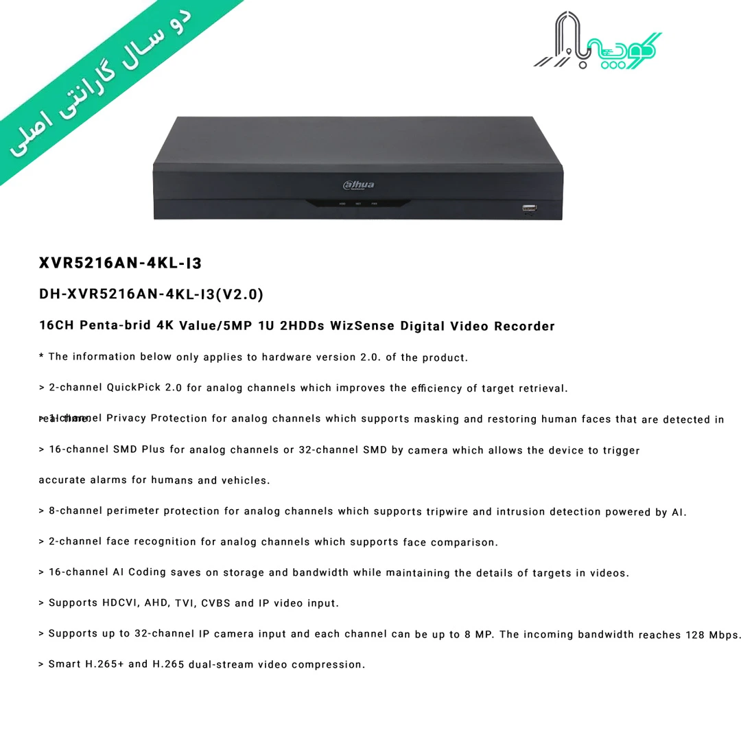 مشخصات فنی دستگاه XVR داهوا مدلDH-XVR5216AN-4KL-I3